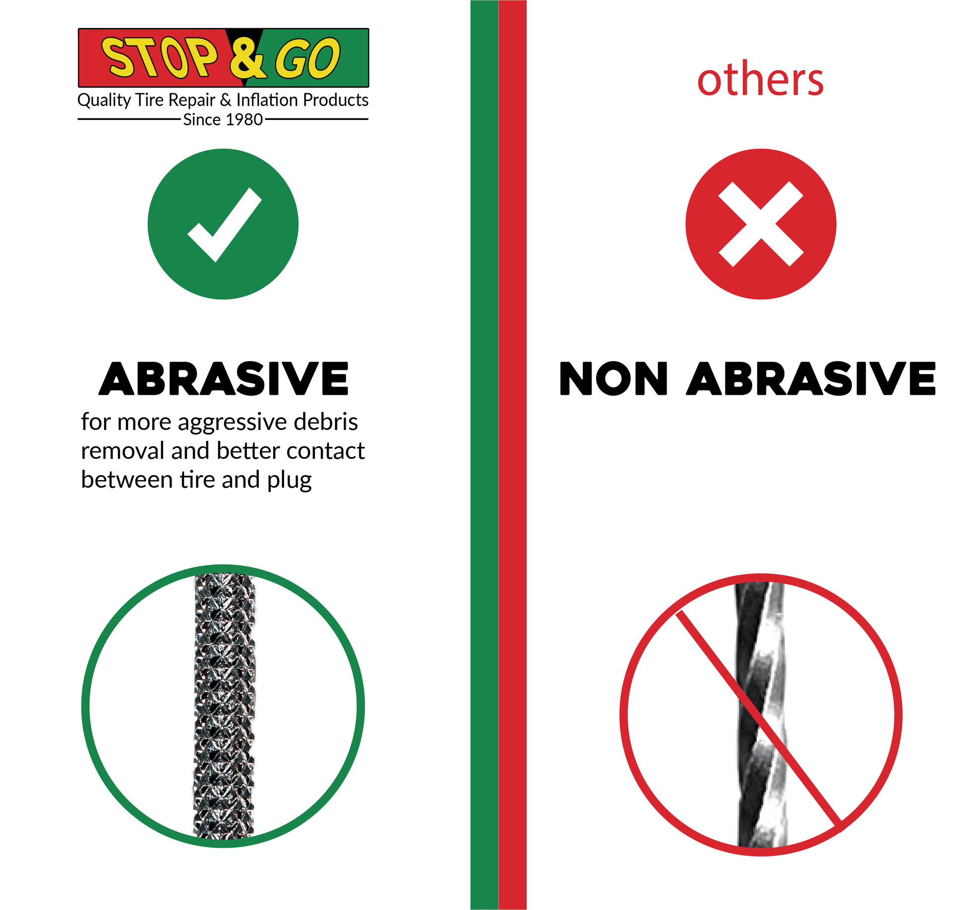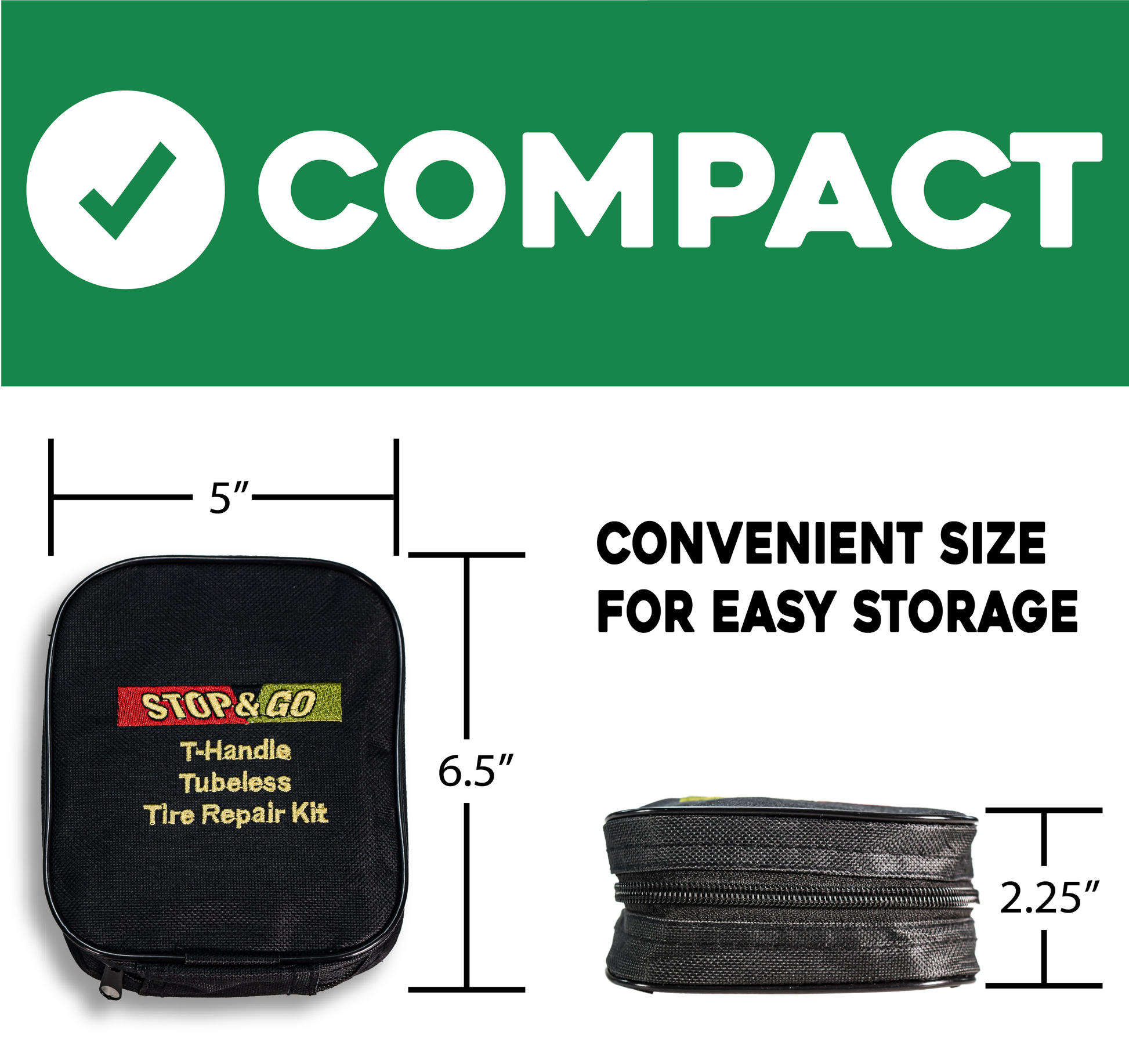Repair tire punctures quickly and reliably with the Stop & G0 1020. This 25-Piece Tubeless T-Handle Rope Plug Tire Repair Kit. Designed for tubeless tires on cars, motorcycles, ATVs, Jeeps, trucks, and tractors, this comprehensive kit includes everything you need for effective roadside or garage repairs. The kit features 20 high-quality rubber reinforced rope plugs that create a durable seal for punctures, ensuring you can get back on the road with confidence.